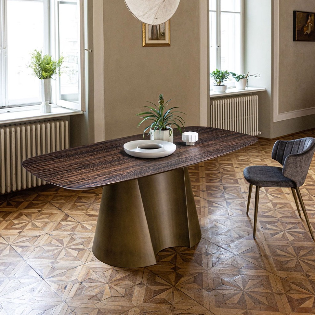Thor are o baza metalica realizata dintr-un amestec maiestrit de elemente trunchiate concave si convexe. Un joc geometric care da nastere unui design futurist. O masa decorativa si functionala pentru spatiile de locuit cu un spirit indraznet si inovator. O masa de designer perfecta pentru amenajarile interioare ale casei.