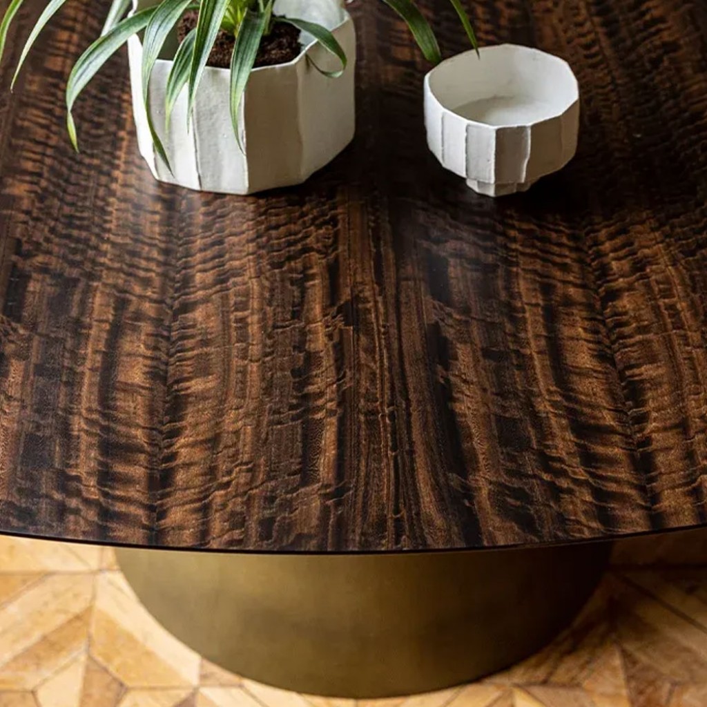 O masa sofisticata si deosebit de unica: baza acestei creatii este un trunchi de con divizat in patru sectiuni egale care, odata reasamblate, creeaza – atunci cand sunt privite de sus – form.. -