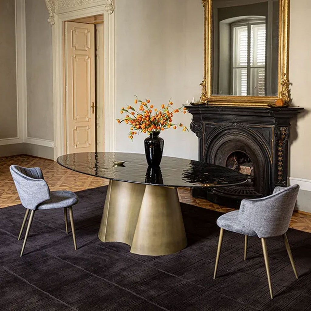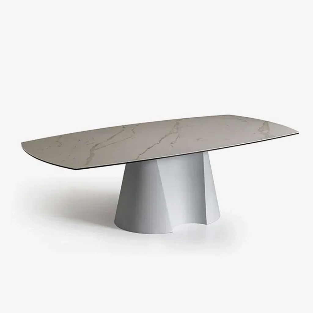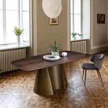 Masa cu blat oval din ceramica maxfine sau lemn furnir lacuit si baza din lemn.Dimensiuni:Lungime – 220 / 180 / 200 / 240 / 260 cmLatime – 110 / 100 / 100 / 110 / 110 cmInaltime – 75 cm.. -