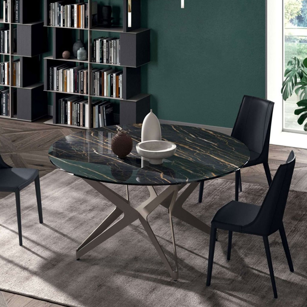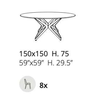 Cod: T403 - Designer: Luca Tonelli & Davide Carlesi150 este noua dimensiune a perfectiunii. Diametrul ideal pentru un blat ceramic cu un aspect prestigios care cuprinde trei mese din col.. -