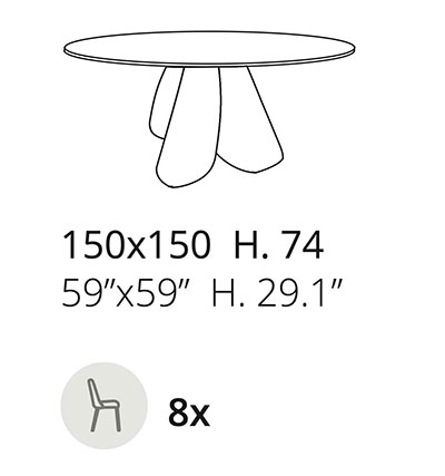 150 este noua dimensiune a perfectiunii. Diametrul ideal pentru un blat ceramic cu un aspect prestigios care cuprinde trei mese din colectia Ozzio Italia: Cirkle Fisso, Big Round Fisso si Veliero Fisso. 4 culori din care sa alegi, dintre nuante fara precedent si vene vibrante, pentru un proiect care are toata savoarea exclusivitatii. Masa de sufragerie cu blat circular fix Ø 150 si baza metalica vopsita.