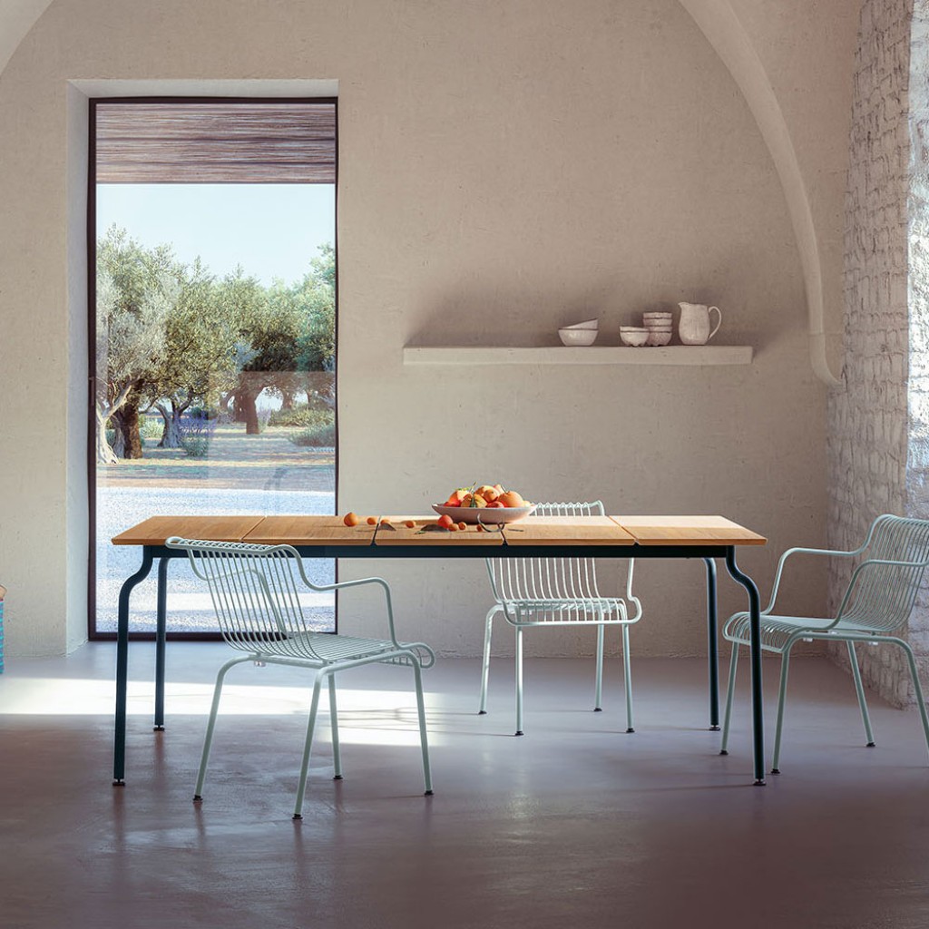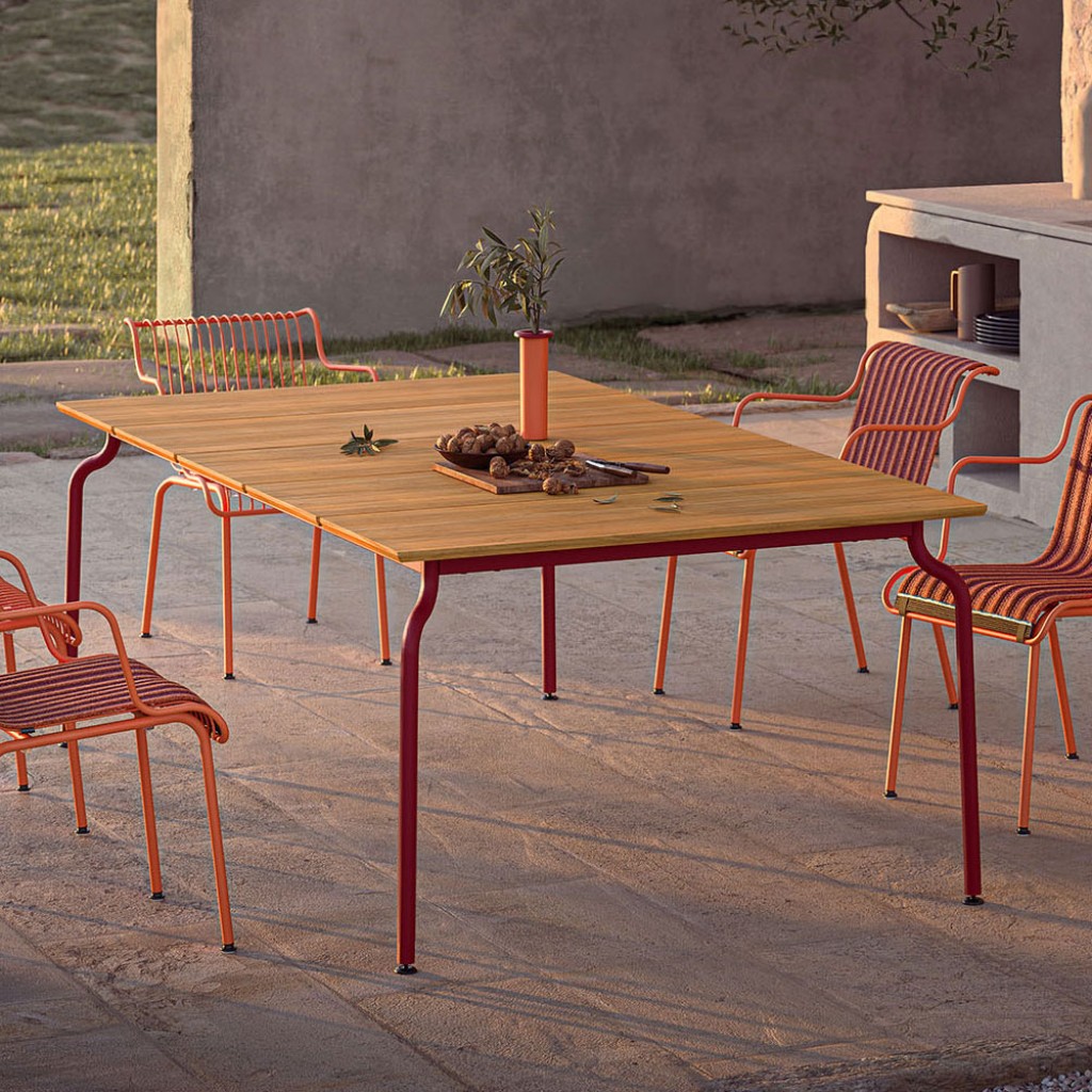 Designer Ronan & Erwan BouroullecOfficina este o masa de interior - exterior, cu cadrul din fier forjat, galvanizat sau tratat cataforetic si vopsit in pulbere de poliester. Blatul .. -