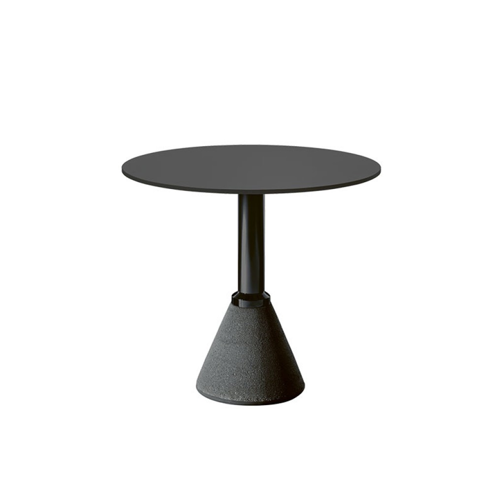 Table_One Bistrot este o masa cu baza din beton pictat, clasic sau neugru, cadru din aluminiu pictat si suprata din HPL. Aceasta versiune este pretabila pentru utilizare la exterior.