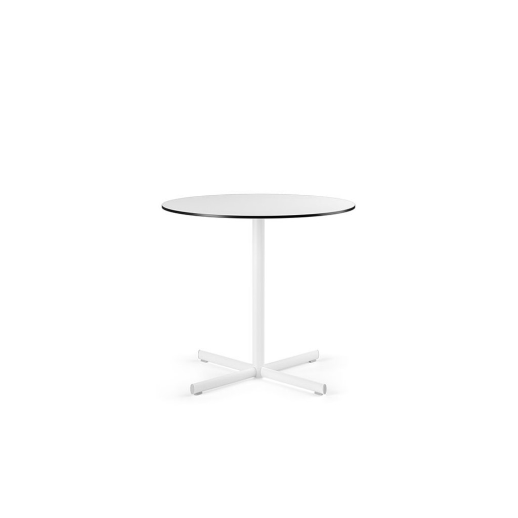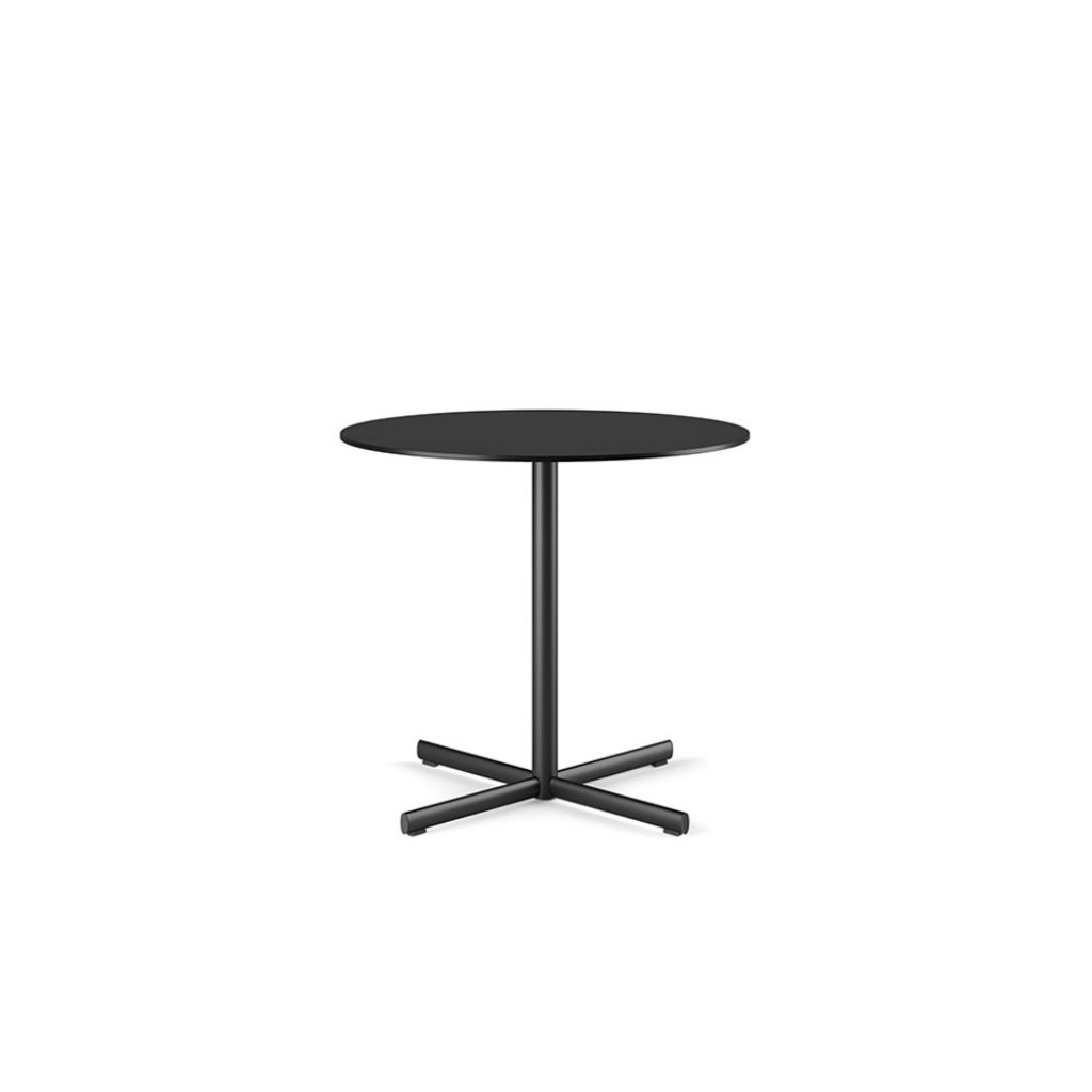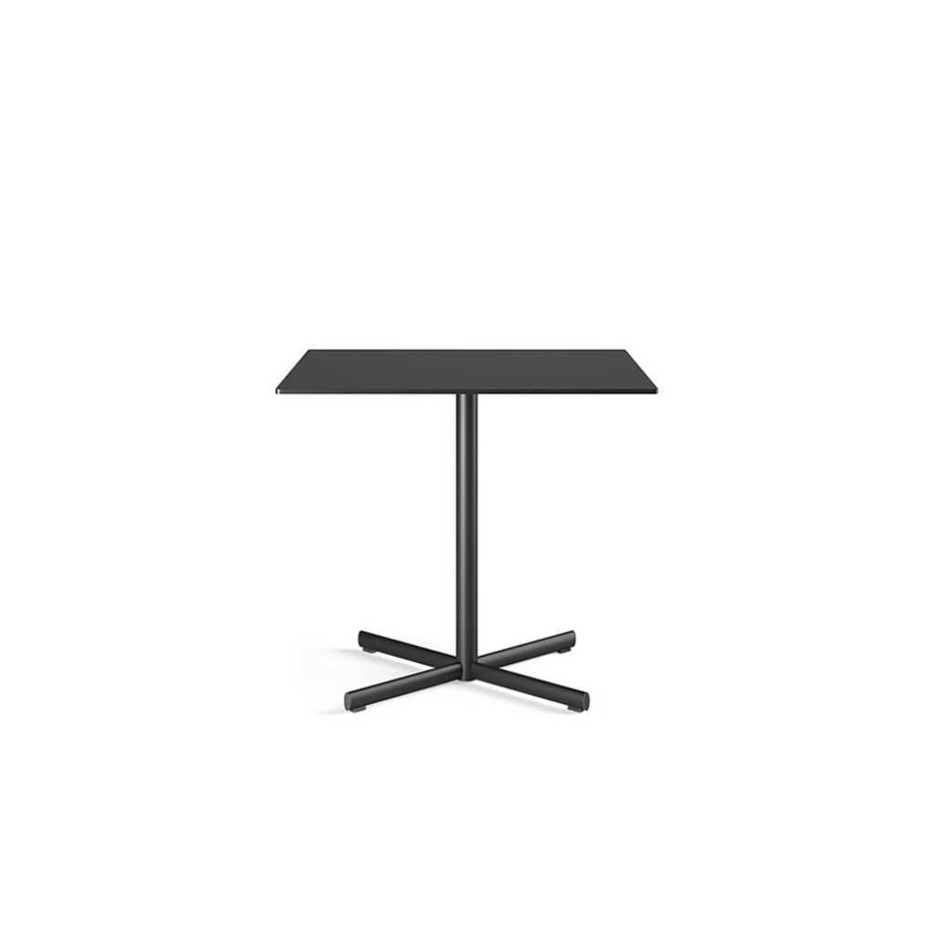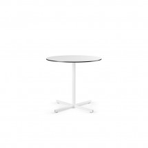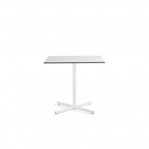 Aceasta masa are o singura coloana centrala si patru tije reglabile, cu suport la sol. O cruce plata de sustinere din aluminiu turnat permite alegerea blaturilor HPL atat in forma rotunda (80 cm diametru), cat si patrata (80 x 80 cm). Tratamentele specifice de acoperire o fac potrivita pentru utilizare atat in interior, cat si in exterior.