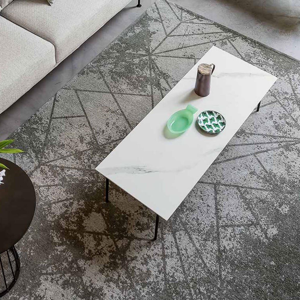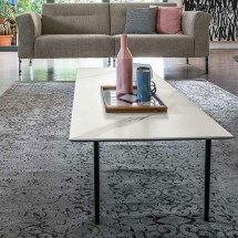 Azimut este o masuta de cafea dreptunghiulara cu grosimea de 40 mm si marginile la unghi de 30 °, cu Laminam si sticla cu grosimea de 14 mm.