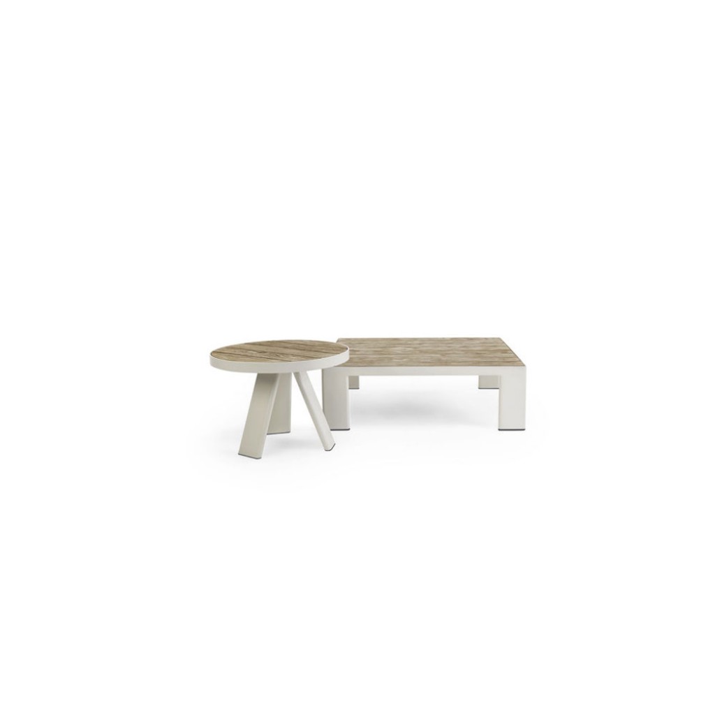 Mesele din colectia Esedra dispun de o rama din aluminiu, iar partea superioara este realizata din lemn (tec) sau piatra ceramica.