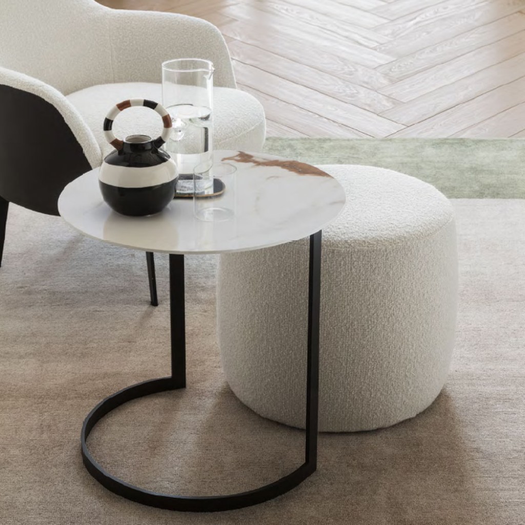 Ribbon este o masa inovatoare de cafea care amesteca eleganta metalului vopsit in negru sau bej perlat cu blaturi bronz si sticla temperata. Baza de 14 cm, creeaza un efect vizual dinamic, a..