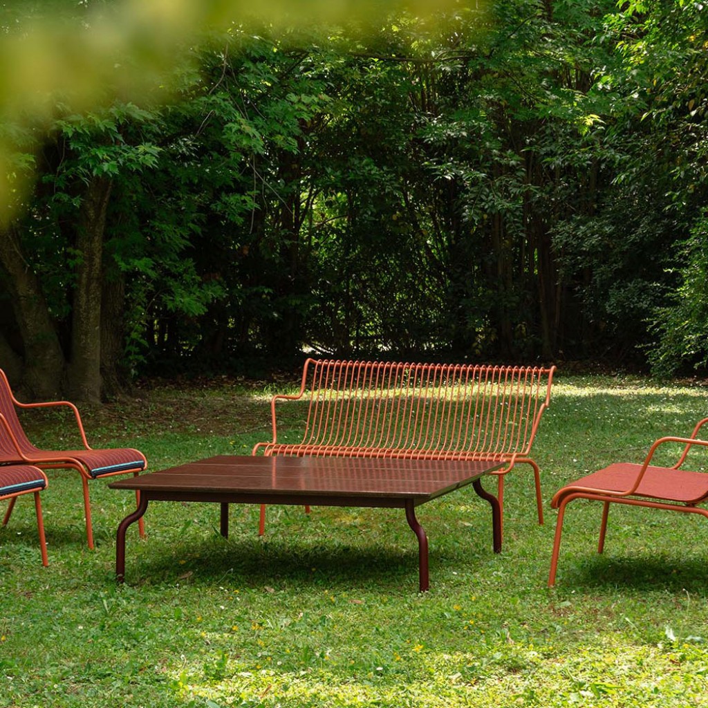 Cadrul fotoliului este din fier forjat, zincat sau vopsit in pulbere de poliester. Tapiteria este din poliuretan extrudat cu capac detasabil din tesatura Kvadrat (Divina MD, Divina Mélange, .. -