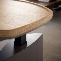 Moon, o alta masa din colectia Wave, reproduce baza caracteristica formata din fasii de lemn masiv asamblate manual. Privit de sus, blatul aminteste de o luna, iar detaliul metalic de la baz.. -