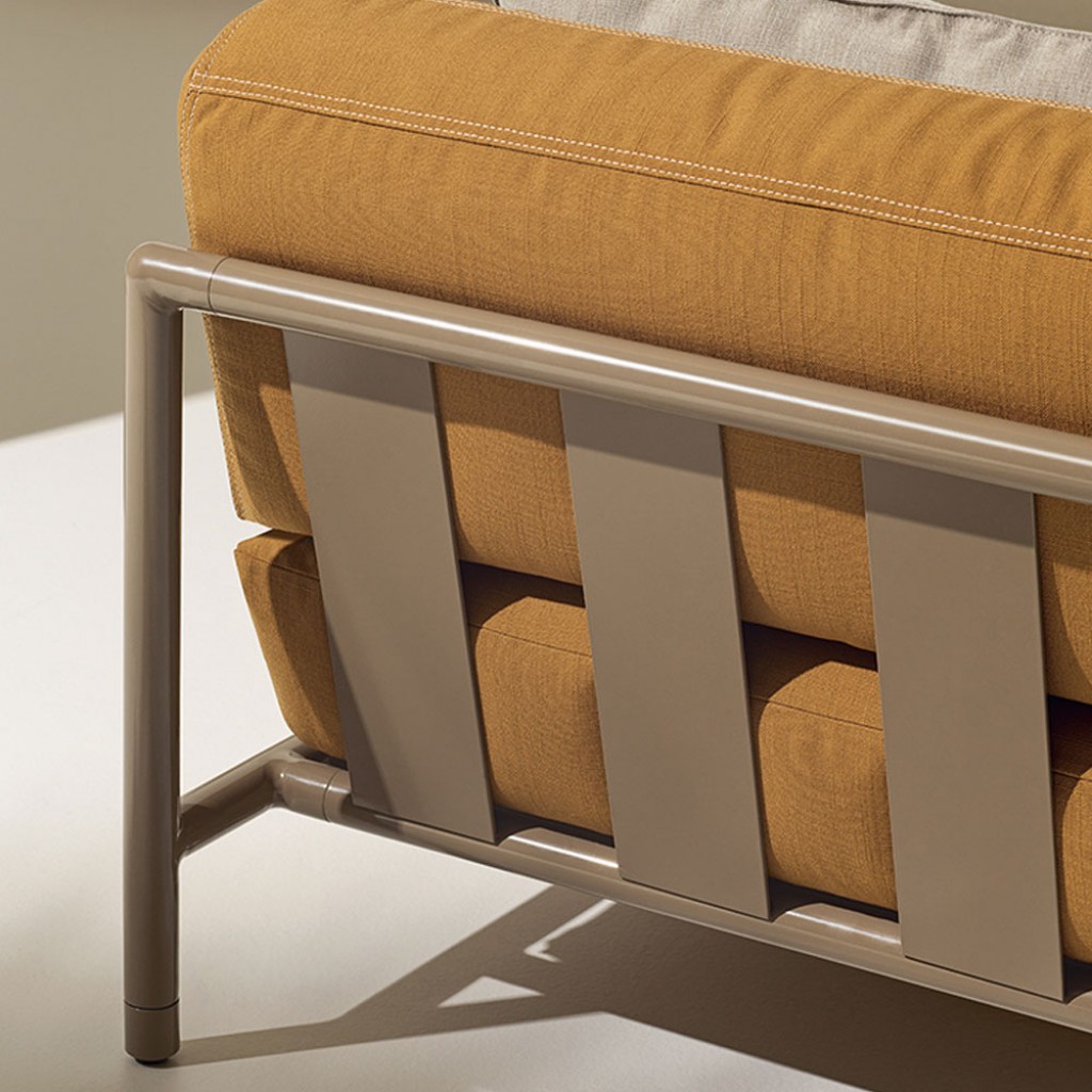 Lodge este colectia de mobilier lounge proiectata de Ethimo si Christophe Pillet, creata pentru a transforma orice spatiu exterior intr-un mediu primitor, relaxant si armonios. Inspirata de atmosfera evocatoare a cabanelor cufundate in natura, aceasta linie de mobilier de exterior se remarca prin volumele sale generoase, detaliile rafinate si estetica contemporana calda. Canapelele modulare, fotoliile, sezlongurile, tabureti si masutele de cafea compun un sistem versatil, ideal pentru crearea de aranjamente personalizate in gradini, terase sau spatii de ospitalitate. Structurile tubulare din aluminiu, usoare, dar solide, sunt puse in valoare de un finisaj lucios care interactioneaza cu lumina naturala, evidentiind textura materialelor. Paleta de culori Kaki, Black Red, Sesamo si Radice evoca tonurile intense ale pamantului, oferind atmosfere calde si sofisticate. Pernele, cu formele lor imbratisatoare, ofera o sedere profunda si relaxanta, datorita si tesaturilor tehnice durabile care combina frumusetea si performanta. Cusaturile duble, inspirate de croitoria din denim, dezvaluie sufletul artizanal al colectiei.