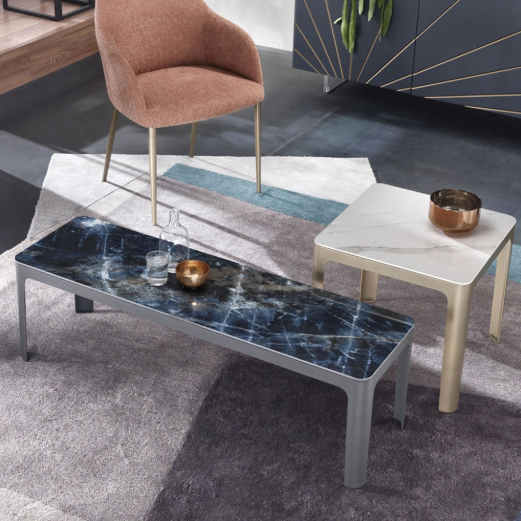 Living este caracterizata de suprafata din ceramica, usoara si eleganta, cu o structura din otel vopsit si un design rafinat.Dimensiuni - Scuare Bianco StatuarioF - Ø 120 X H 75F - L 120 X P.. -