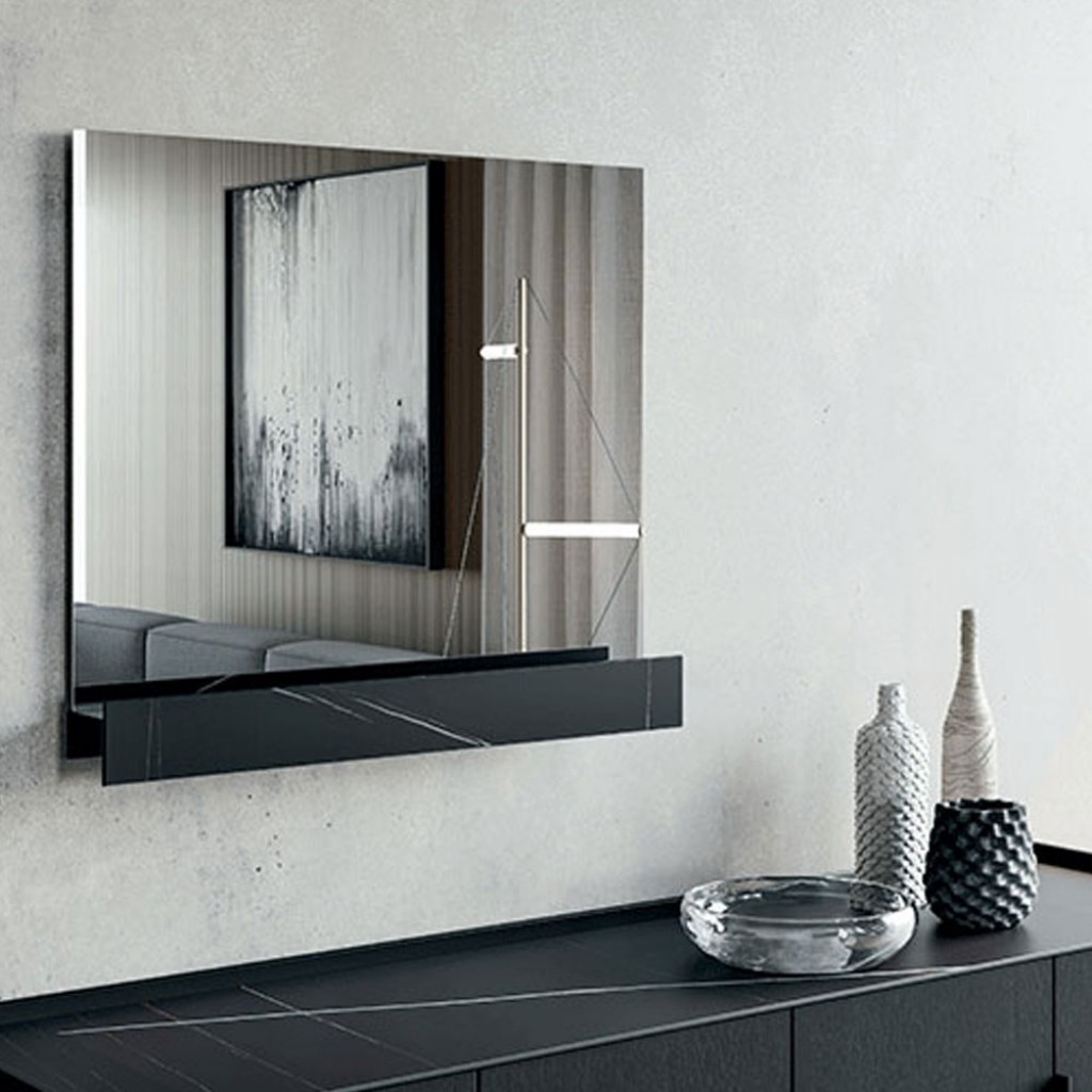 Cele patru fete din sticla fume incadreaza oglinda si confera lejeritate si tridimensionalitate unui obiect traditional bidimensional. Pozitia din spate a oglinzii, fata de rama, creeaza ilu.. -