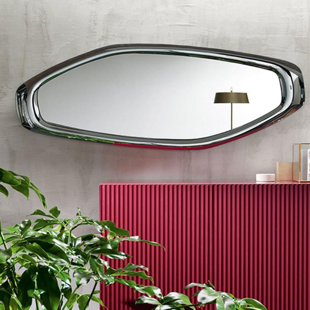 Sea impresioneaza prin nonconformismul ramei din sticla curbata, care invaluie magia oglinzii asemenea unui voal pretios. Formele neregulate si asimetriile invita la inovatie, fiind accentua.. -