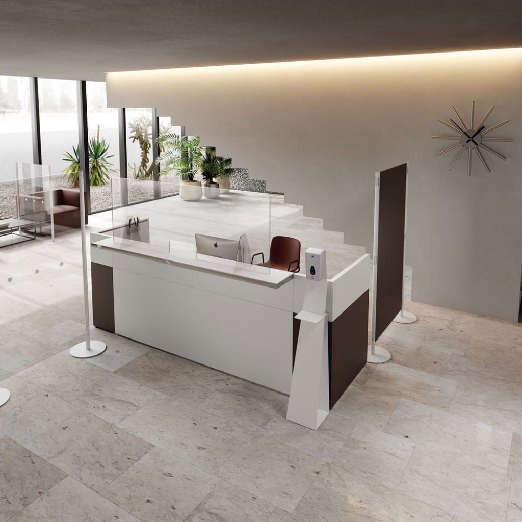 Eos ajuta la crearea de solutii luminoase, colorate, pentru zonele de receptie. Receptie cu design contemporan, caracterizata de panouri laterale din melamina si ecrane frontale cu rama.. -