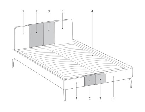 - Tablia patului din spuma poliuteranica, densitate 30 kg / m3, acoperita cu Tecnoform.