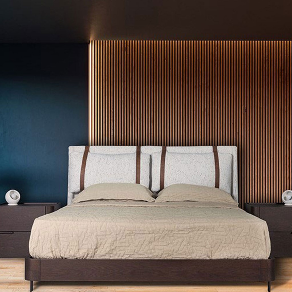 Pat cu tablie din lemn furniruit sau lac. Tablia are iluminare LED ascunsa, precum si posibilitatea instalarii de porturi USB. Este disponibil spatiu de depozitare.Dimensiuni:Lungime – 219 c.. -