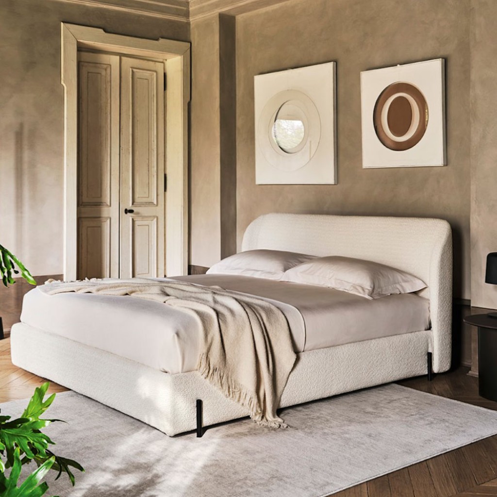Caracteristica remarcabila a patului Oleandro este spatarul sau infasurator, a carui componenta orizontala imbratiseaza captuseala, oferindu-i o atingere usoara si accentuandu-i moliciunea. .. -