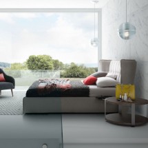 Bend este un pat cu forme sinuoase dar contemporane, cu o tablie rigida ce gazduieste un spatar captusit, confortabil si ideal pentru citit. Poate fi disponibil si in mix de tesatura cu piel.. -