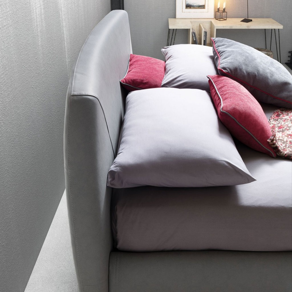 Patul Alar are un design minimal si arbonios, cu spatar subtire, tapitat in tesatura sau piele, pe care se pot sprijini optional doua perne de sustinere pentru un confort sporit.Design by St.. -