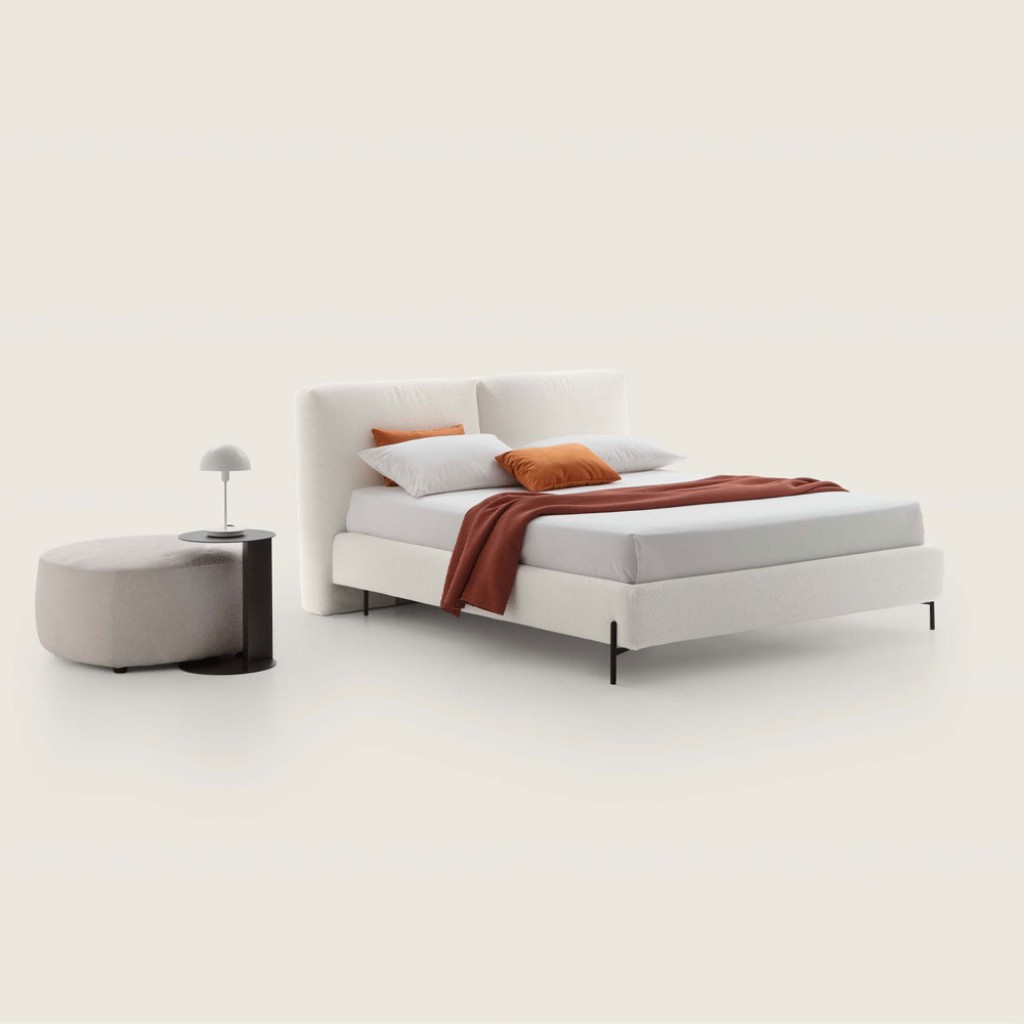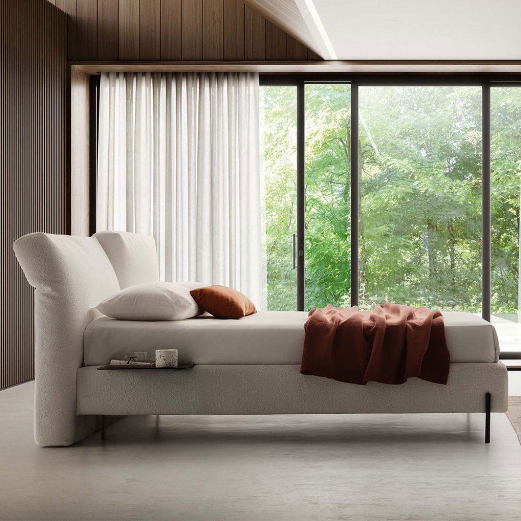 O combinatie de mobilier pentru zona de dormit. Un pat a carui tablie generoasa aminteste de ideea de perna moale. Design – Stefano SpessottoDimensiuni disponibile la cerere.. -