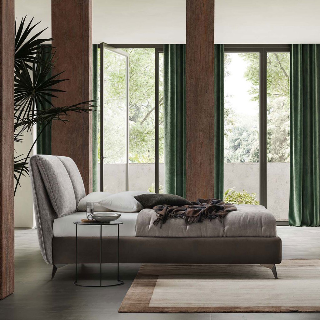 Noa este un pat sculptat cu o structura armonioasa, rationala, inspirat de rocile sculptate de vant. Moale si voluminoasa, tablia patului are o frumusete tridimensionala, accentuata de cusat.. -