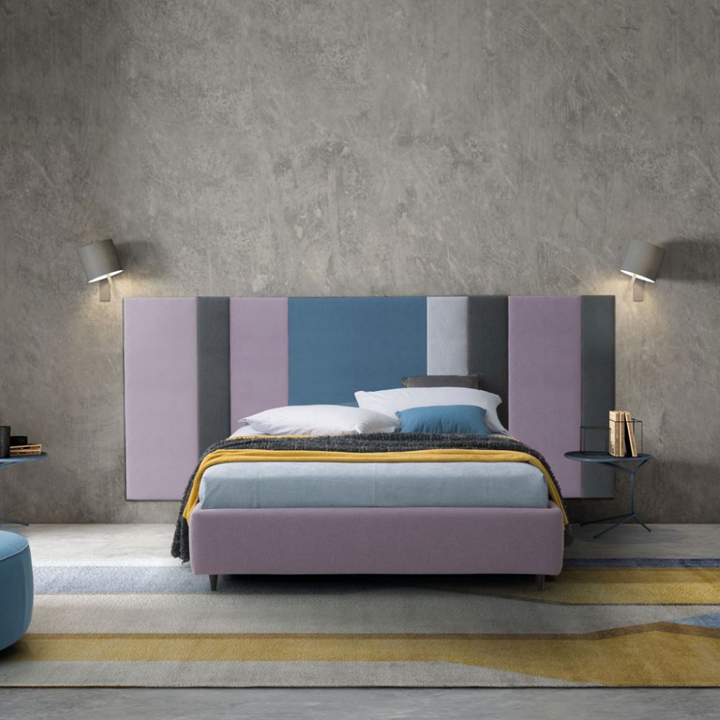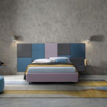 Pat dublu tapitat cu material textil, piele sau piele ecologica pentru a fi personalizat intr-o gama larga de finisaje, marca Dall’Agnese. Tablia lata si moale poate fi protagonista si evide.. -