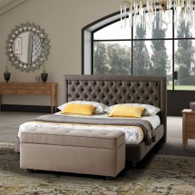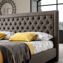 Proemineta capitonarii centrale, imblanzeste geometria acestui model de pat, iar ornamentele din cristale decorative ii confera stralucire, aspect domnesc si rafinament