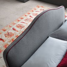 Forma patului tapitat compact Sentempa pare sa fie definita de cusaturile originale care se desfasoara de-a lungul tabliei, trasand doua forme triunghiulare pe laterale. Elementele decorativ.. -