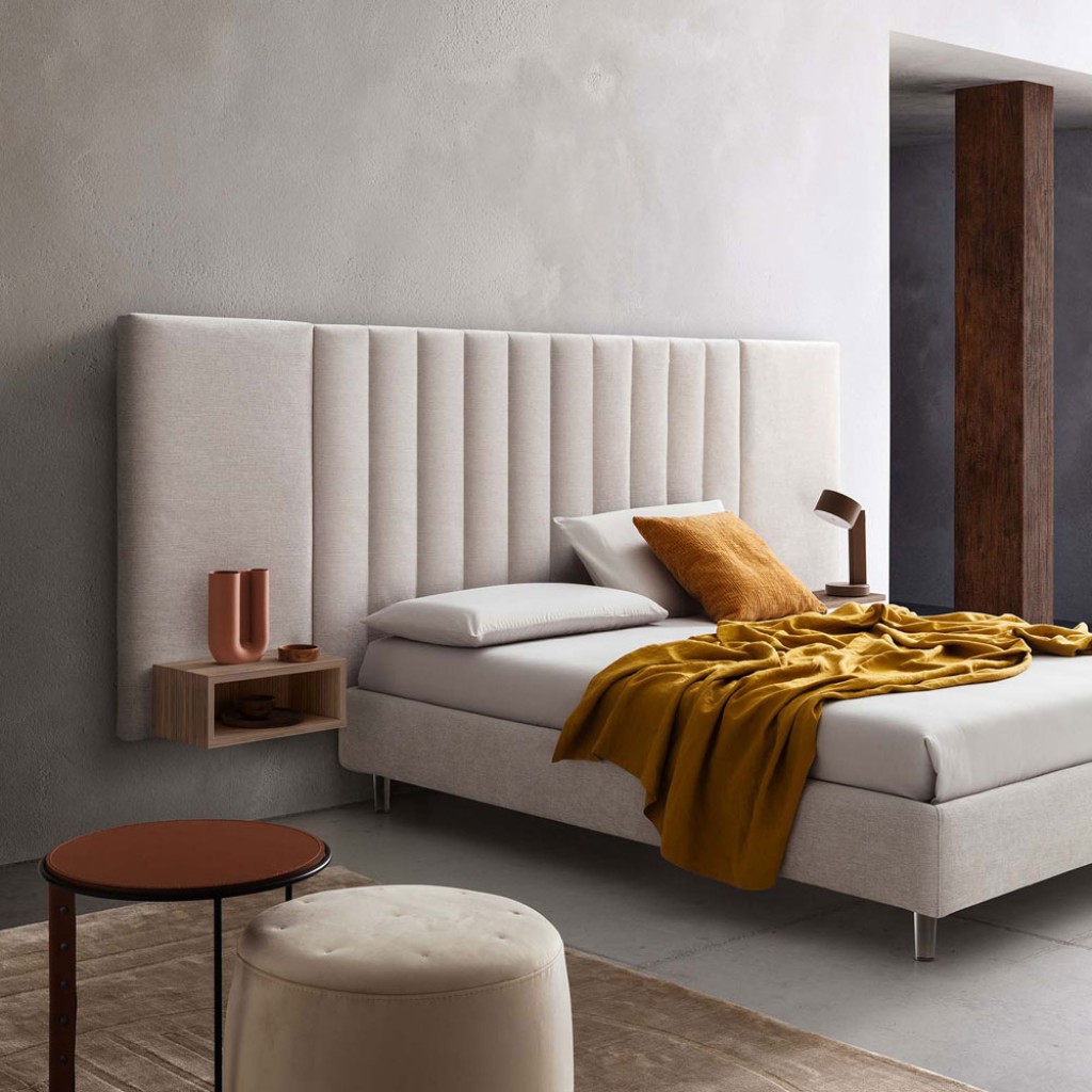 Pat cu tablie realizata din perne moi tapitate.Alegeti dimensiunea patului care vi se potriveste cel mai bine.Maximizati spatiul disponibil cu un design subtire si compact.Selectati picioare.. -