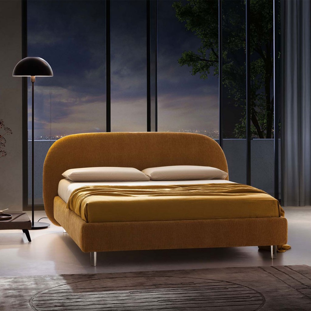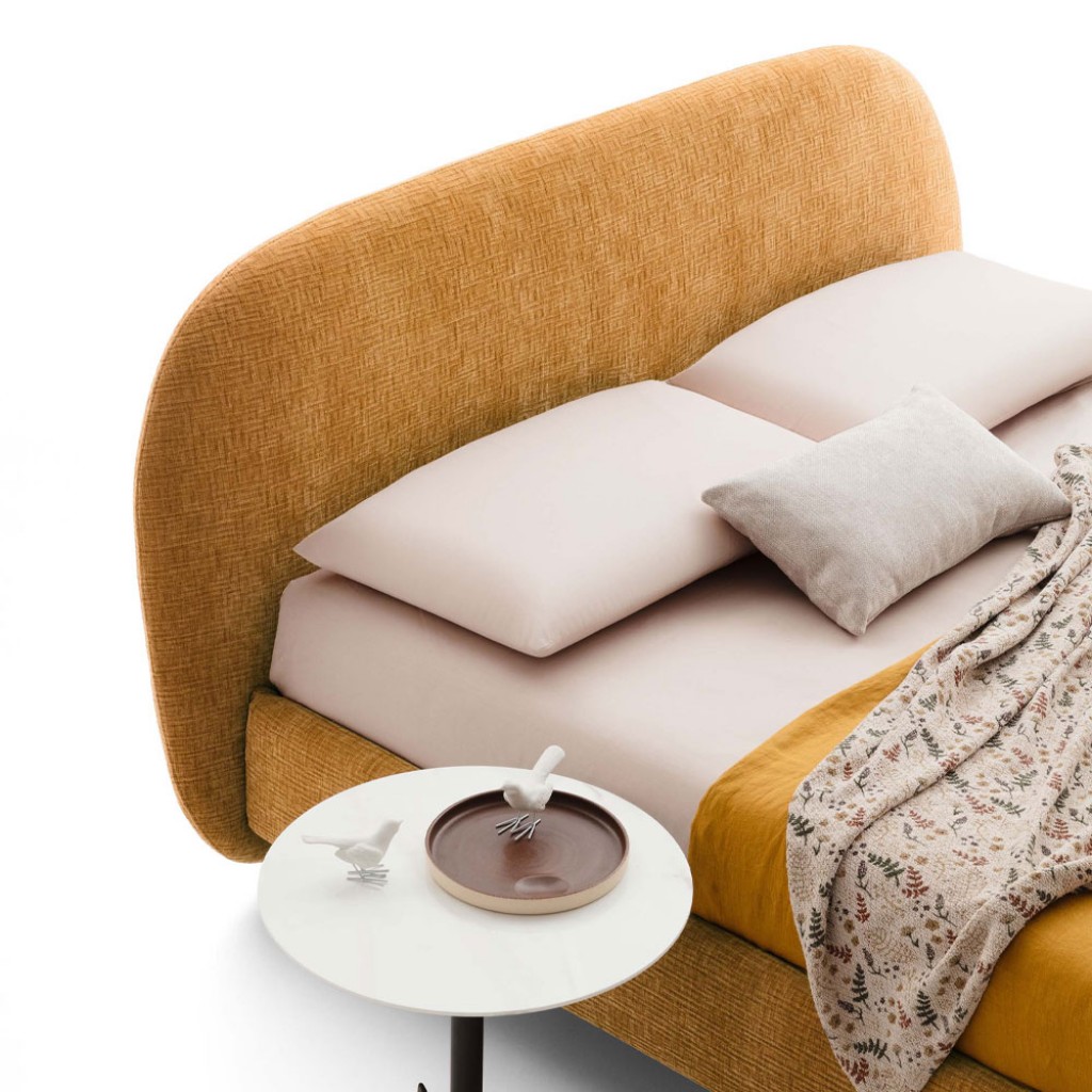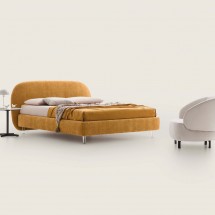 Bend este un pat cu forme sinuoase dar contemporane, cu o tablie rigida ce gazduieste un spatar captusit, confortabil si ideal pentru citit. Poate fi disponibil si in mix de tesatura cu piel.. -