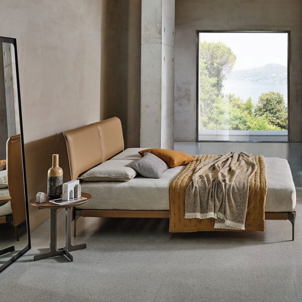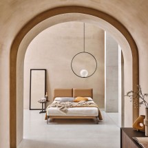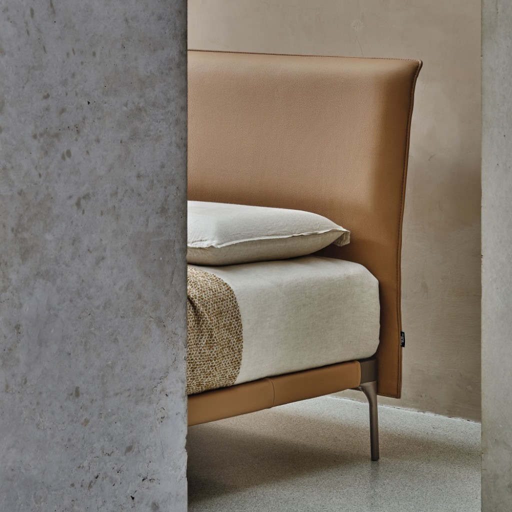 Bend este un pat cu forme sinuoase dar contemporane, cu o tablie rigida ce gazduieste un spatar captusit, confortabil si ideal pentru citit. Poate fi disponibil si in mix de tesatura cu piel.. -