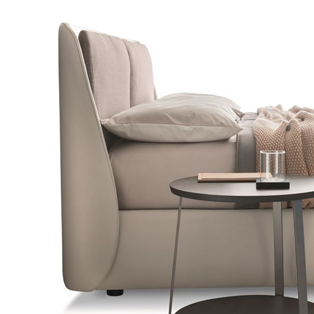 Bend este un pat cu forme sinuoase dar contemporane, cu o tablie rigida ce gazduieste un spatar captusit, confortabil si ideal pentru citit. Poate fi disponibil si in mix de tesatura cu piele.