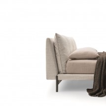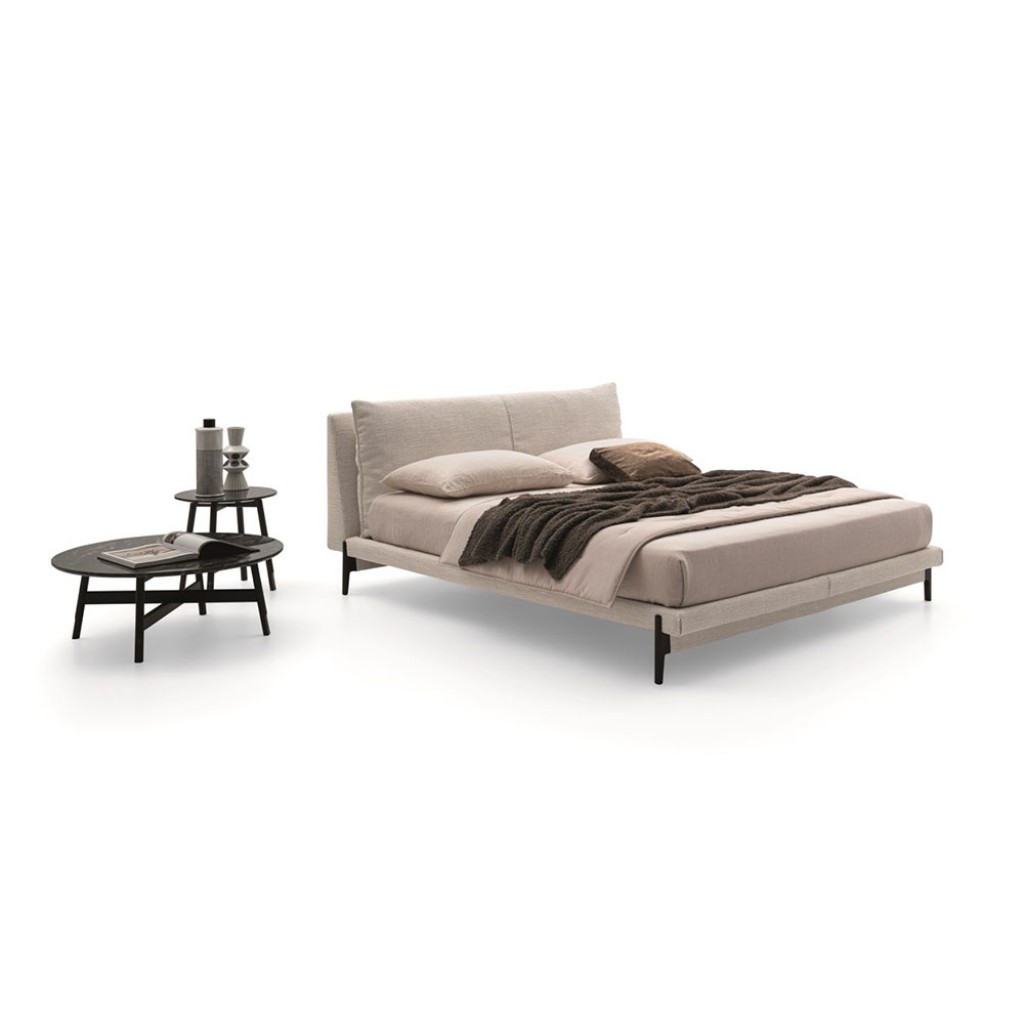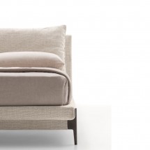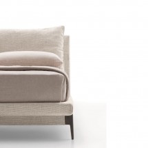 Patul Kim incorporeaza linii elegante si caracteristicile canapelei cu acelasi nume. Are o structura echilibrata, cu tapiteria ce poate fi din tesatura sau mix de tesatura cu piele si poate fi dotata si cu suport extern.