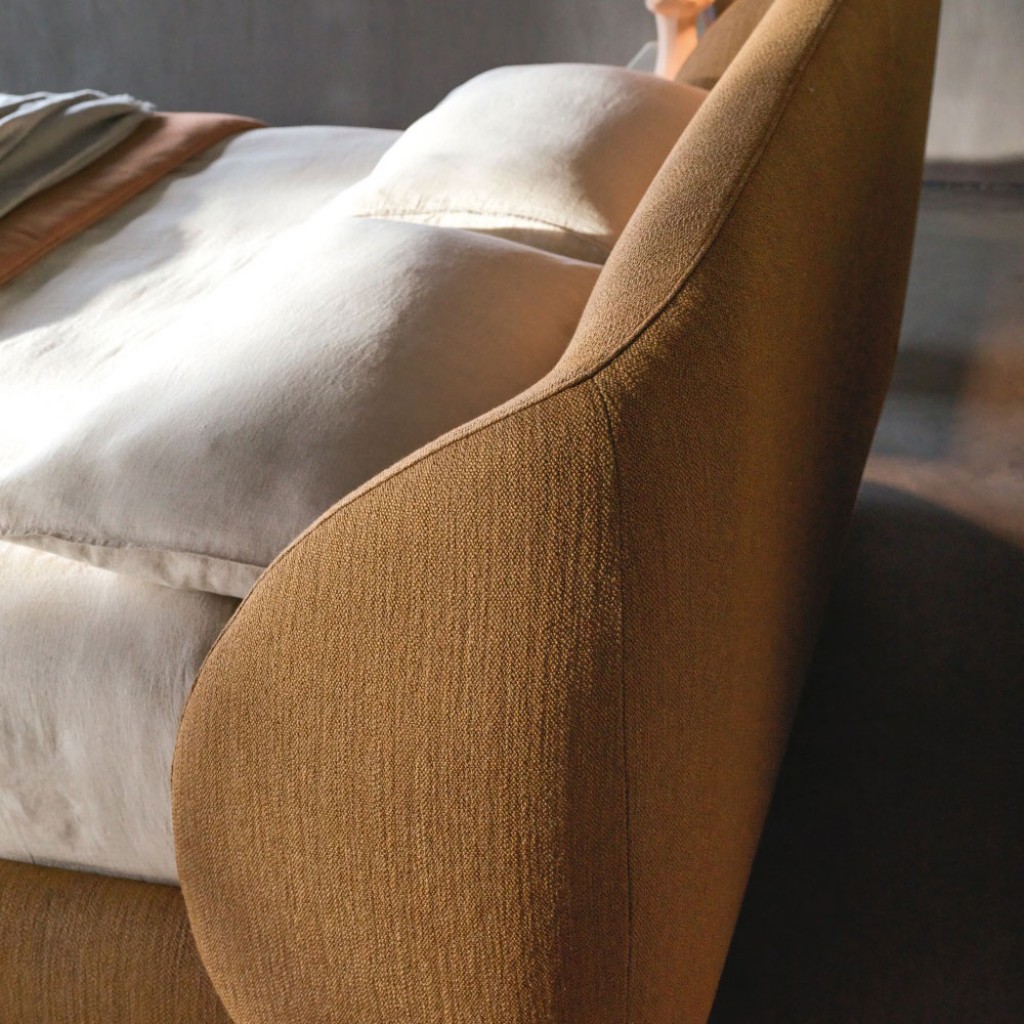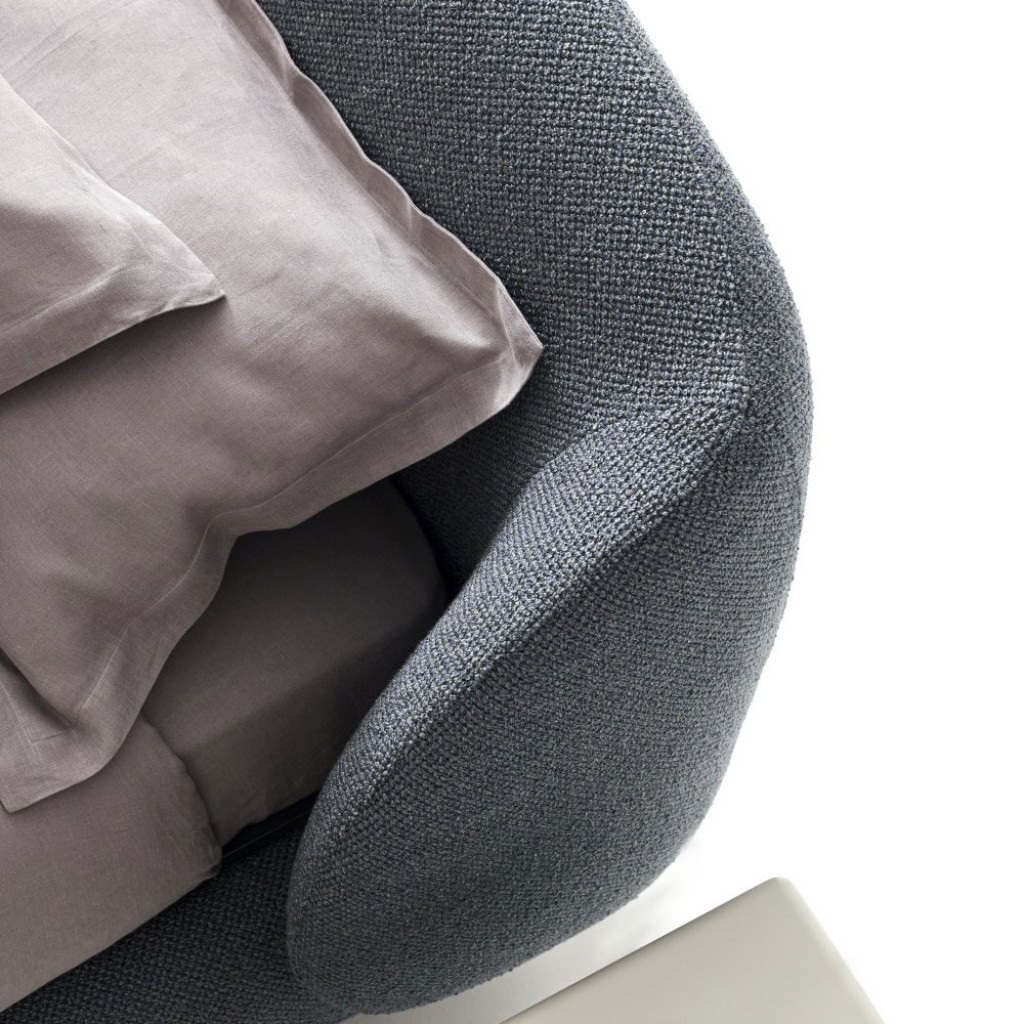Bend este un pat cu forme sinuoase dar contemporane, cu o tablie rigida ce gazduieste un spatar captusit, confortabil si ideal pentru citit. Poate fi disponibil si in mix de tesatura cu piel.. -