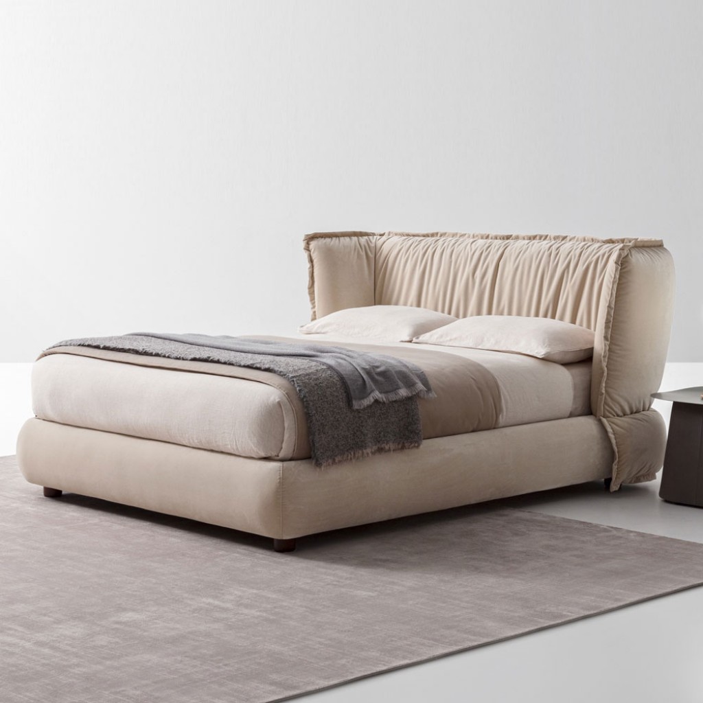 Pat dublu tapitat cu material textil, piele sau piele ecologica pentru a fi personalizat intr-o gama larga de finisaje, marca Dall’Agnese. Tablia lata si moale poate fi protagonista si evide..