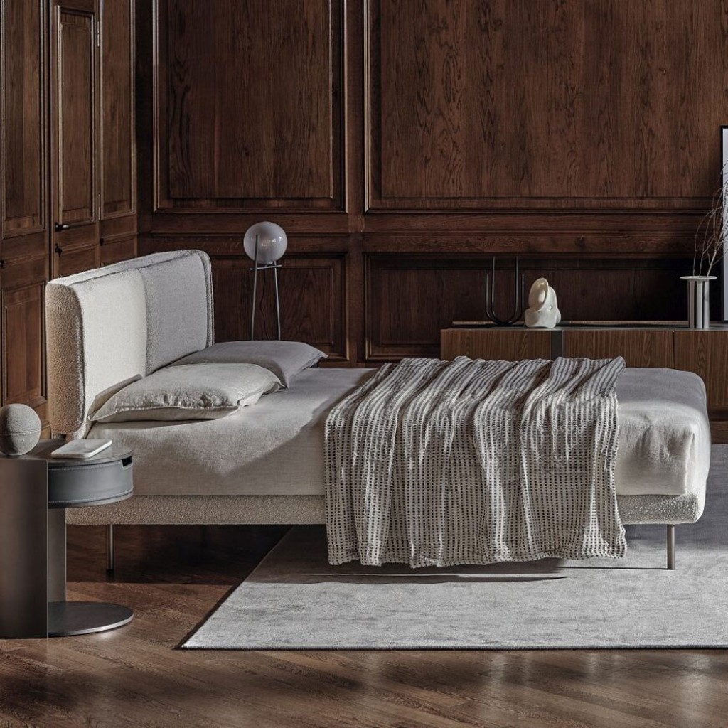 Pat dublu tapitat cu material textil, piele sau piele ecologica pentru a fi personalizat intr-o gama larga de finisaje, marca Dall’Agnese. Tablia lata si moale poate fi protagonista si evide.. -