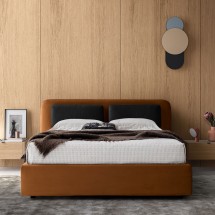 Noa este un pat sculptat cu o structura armonioasa, rationala, inspirat de rocile sculptate de vant. Moale si voluminoasa, tablia patului are o frumusete tridimensionala, accentuata de cusat.. -