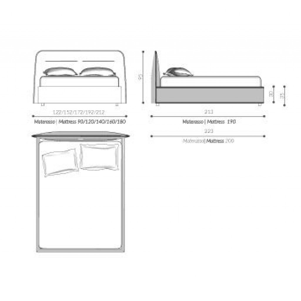 Pat cu tablie din lemn furniruit sau lac. Tablia are iluminare LED ascunsa, precum si posibilitatea instalarii de porturi USB. Este disponibil spatiu de depozitare.Dimensiuni:Lungime – 219 c.. -
