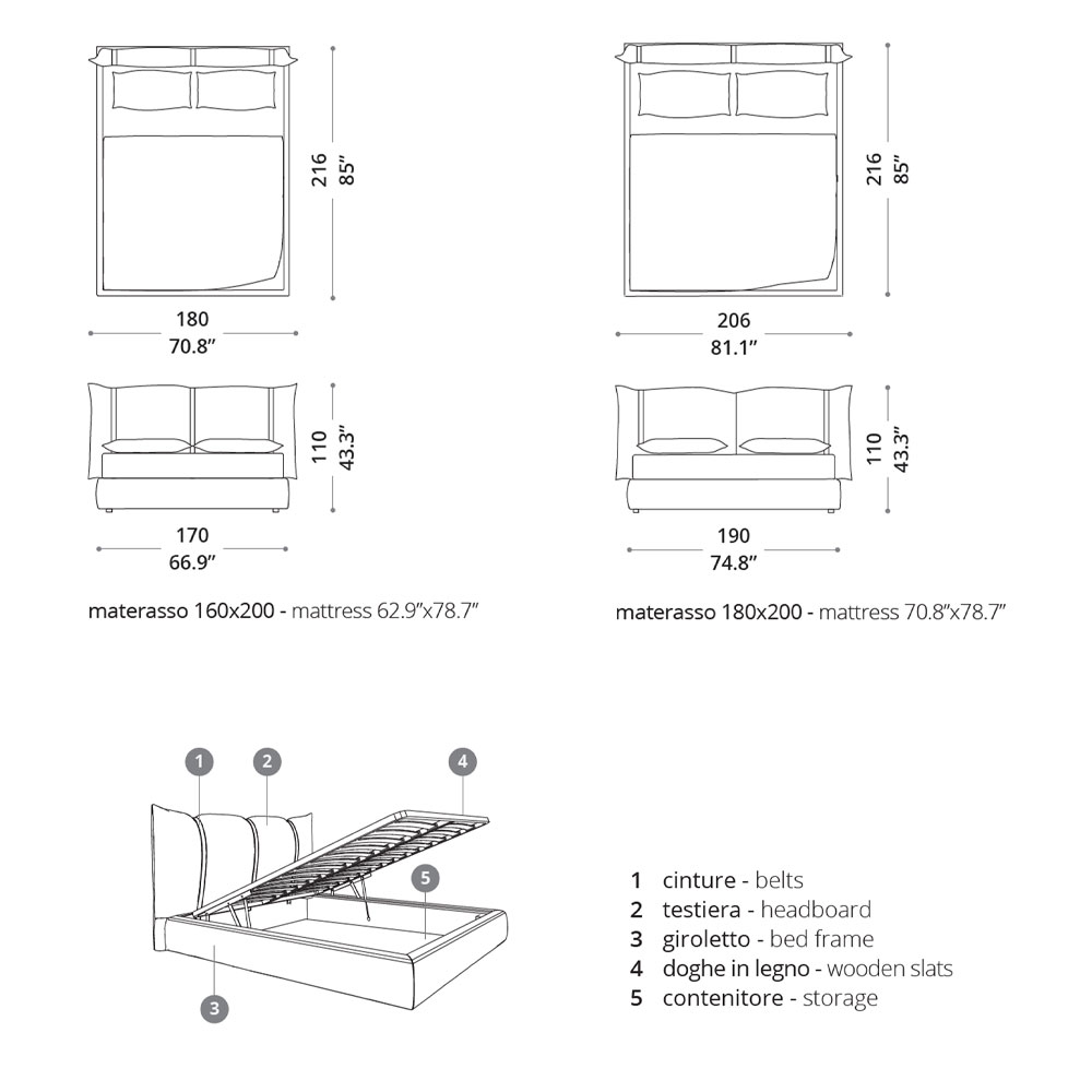 Patul Dolly pune intr-o nota originala tablia traditionala cu margini invelite in partea de jos, unita totusi de cele doua perne separate. Disponibil cu trei dimensiuni ale picioarelor, din .. -