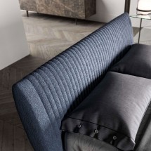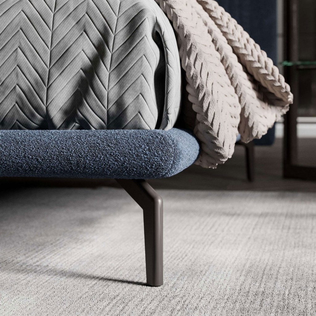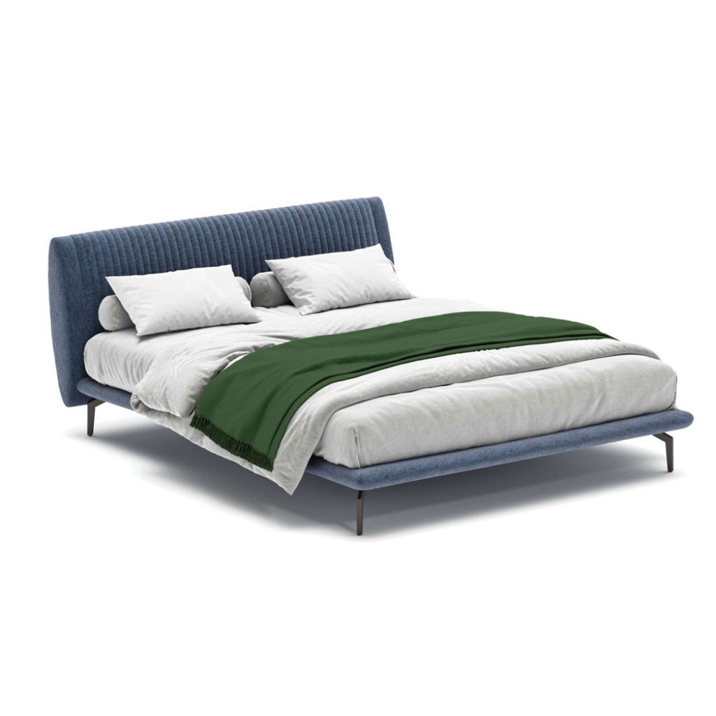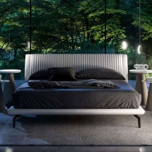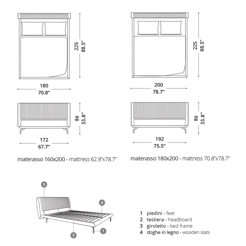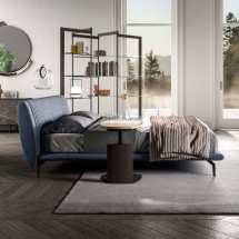 O intoarcere nostalgica in trecut, printr-un pat textil cu stil informal si confortabil. Profil subtire si tablie cu cusaturi delicate care, printr-o usoara bombare, evidentiaza moliciunea sa. Un element de design ideal pentru amplasarea in centrul camerei, datorita maiestriei sale inconfundabile de croitorie. Pat cu tablie si cadru tapitate, disponibile in diferite finisaje. Disponibil in dimensiuni 160 si 180, cu somiera din lemn stratificat. Picioare din metal si cadru cu husa detasabila.