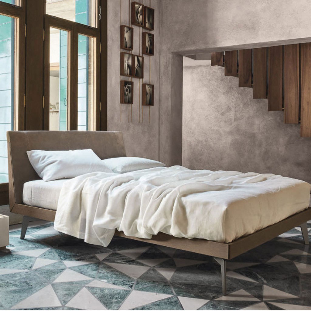 Pat dublu tapitat cu material textil, piele sau piele ecologica pentru a fi personalizat intr-o gama larga de finisaje, marca Dall’Agnese. Tablia lata si moale poate fi protagonista si evide.. -