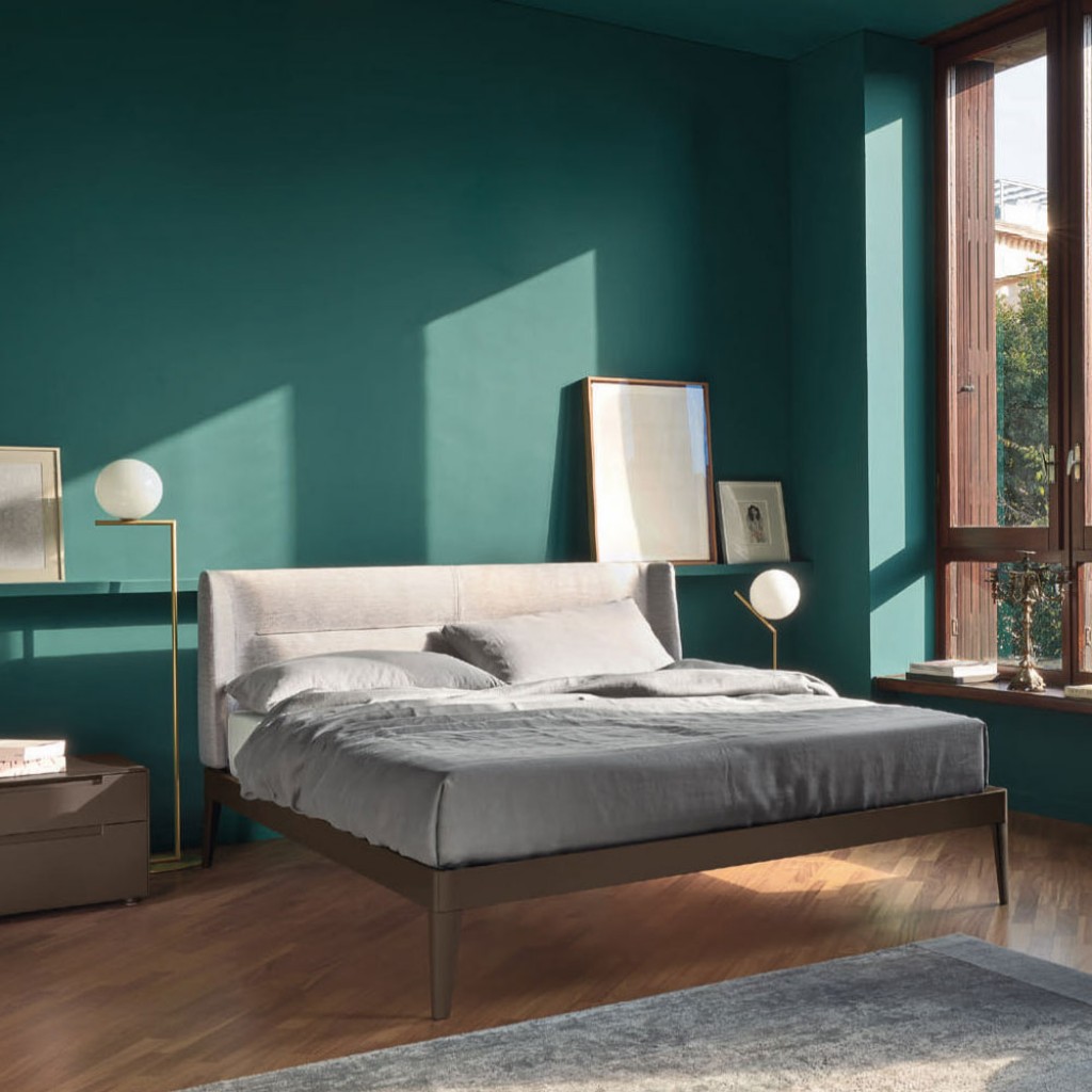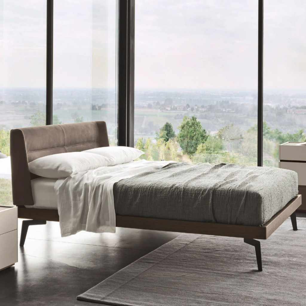 Bend este un pat cu forme sinuoase dar contemporane, cu o tablie rigida ce gazduieste un spatar captusit, confortabil si ideal pentru citit. Poate fi disponibil si in mix de tesatura cu piel.. -
