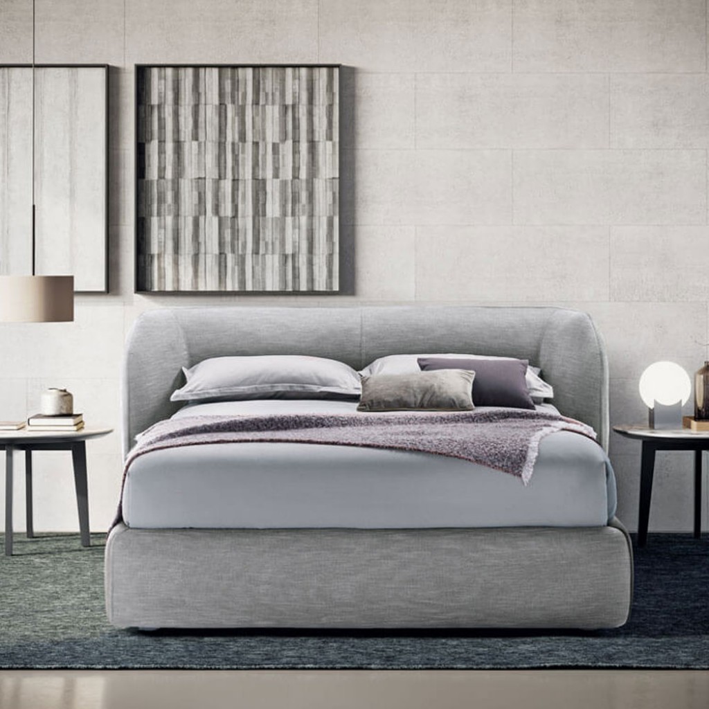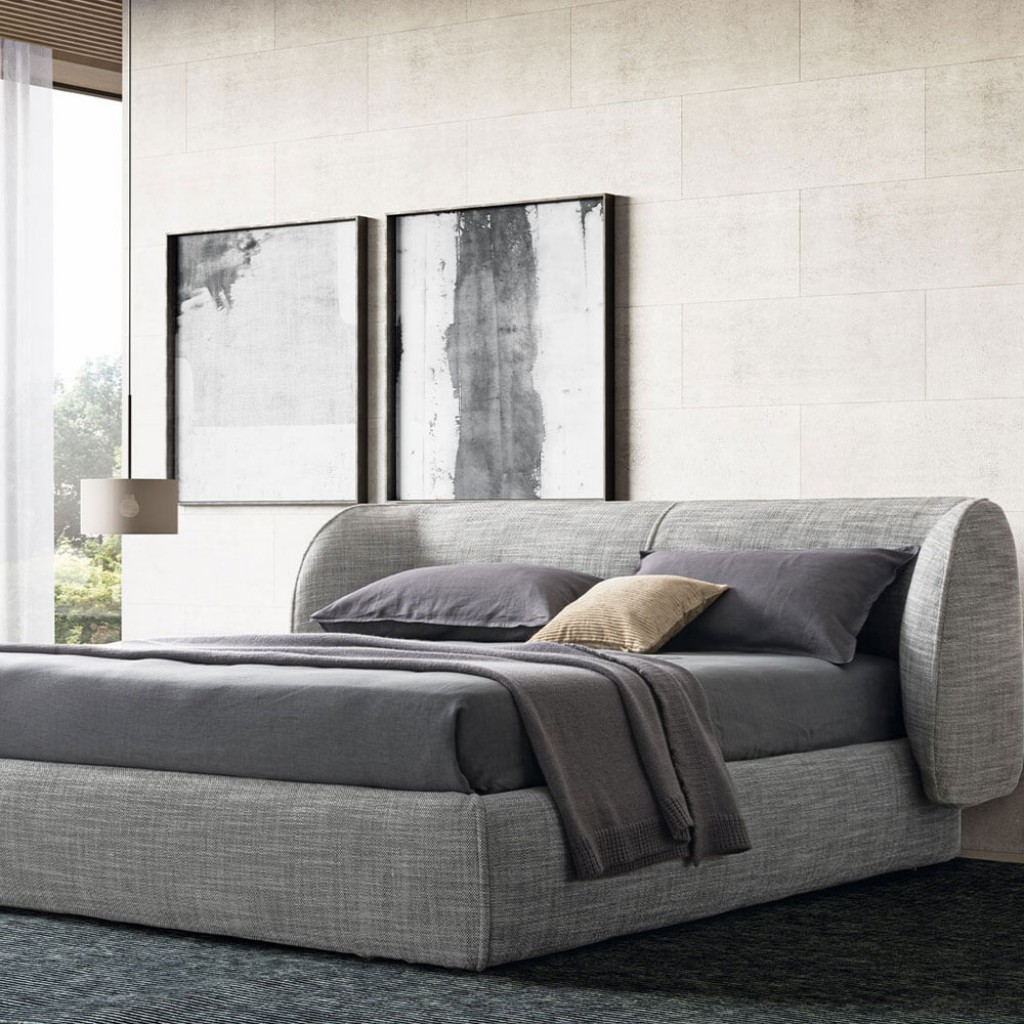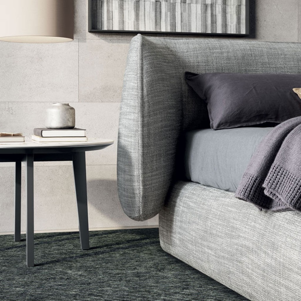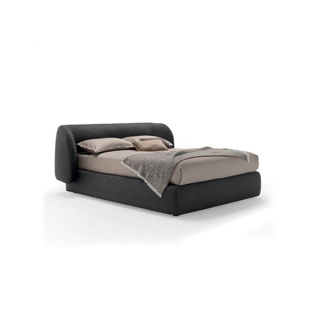 Patul are o tablie foarte confortabila si captusita care exprima gustul pentru o imbratisare continua. Originalitatea combinatiei de astfel de volume diferite pentru pat confera o amprenta puternica si da caracter camerei. Tablia poate fi tapitata cu material textil sau piele ecologica.