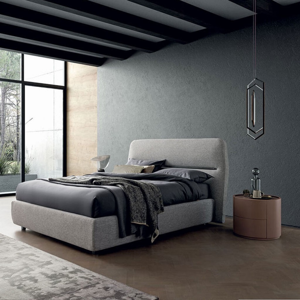 Patul Jill extinde colectia cu o oferta care oglindeste stilul si confortul. Tablia tapitata si cadrul de pat, disponibile fie suspendate pe picioare metalice (in negru, nichel negru si bej .. -