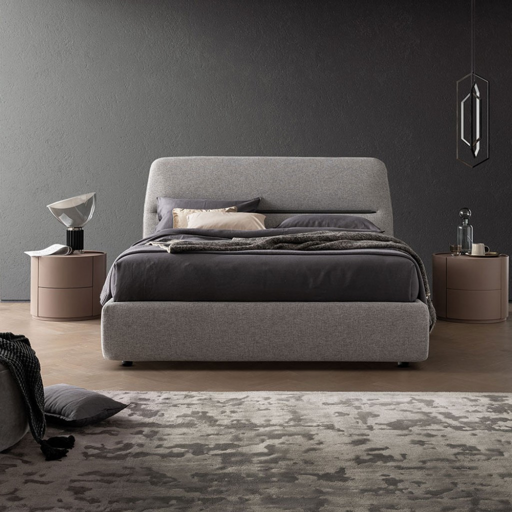 Pat cu tablie realizata din perne moi tapitate.Alegeti dimensiunea patului care vi se potriveste cel mai bine.Maximizati spatiul disponibil cu un design subtire si compact.Selectati picioare.. -