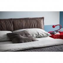 O combinatie de mobilier pentru zona de dormit. Un pat a carui tablie generoasa aminteste de ideea de perna moale. Design – Stefano SpessottoDimensiuni disponibile la cerere.. -