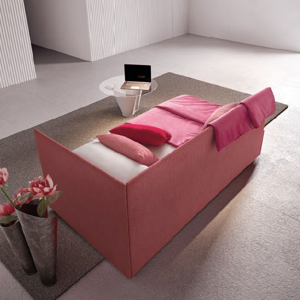 Principiul functionalitatii se inspira din vise si devine realitate: un container sau o structura ridicabila permite o utilizare inteligenta a spatiului, in timp ce o alegere eclectica de tesaturi disponibile atat pentru paturi, cat si pentru canapele, permite un dialog consistent cu decorul casei.