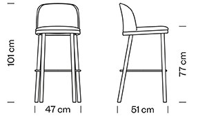 Scaun bar cu 4 picioare, rama de otel si cadru capitonat cu material textil; inaltimea scaunului este de 77cm.Utilizari:cafenele & restaurantehoteluri Metalmobil prezinta noua colec..