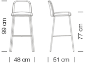 Scaun bar cu 4 picioare, rama de otel si cadru capitonat cu material textil; inaltimea scaunului este de 77cm.