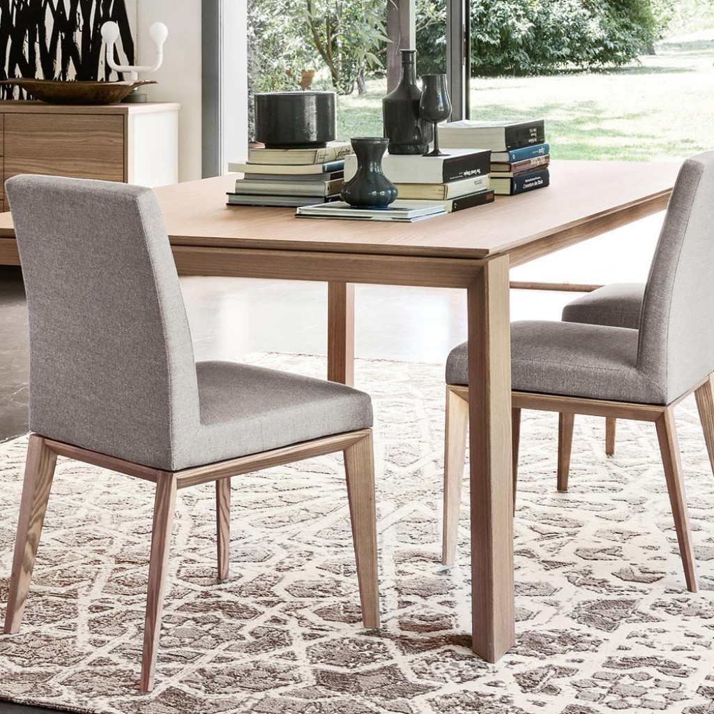 Bess dispune de cadru din lemn si scaun tapitat, acoperit cu piele. Impreuna cu versiunea superioara, Bess Low va deveni protagonistul zonei dumneavoastra de luat masa. Picioarele si partile laterale din lemn de frasin solid prezinta o forma aproape triunghiulara, in timp ce scaunul tapitat este prevazut cu centuri elastice pentru un confort de neegalat.